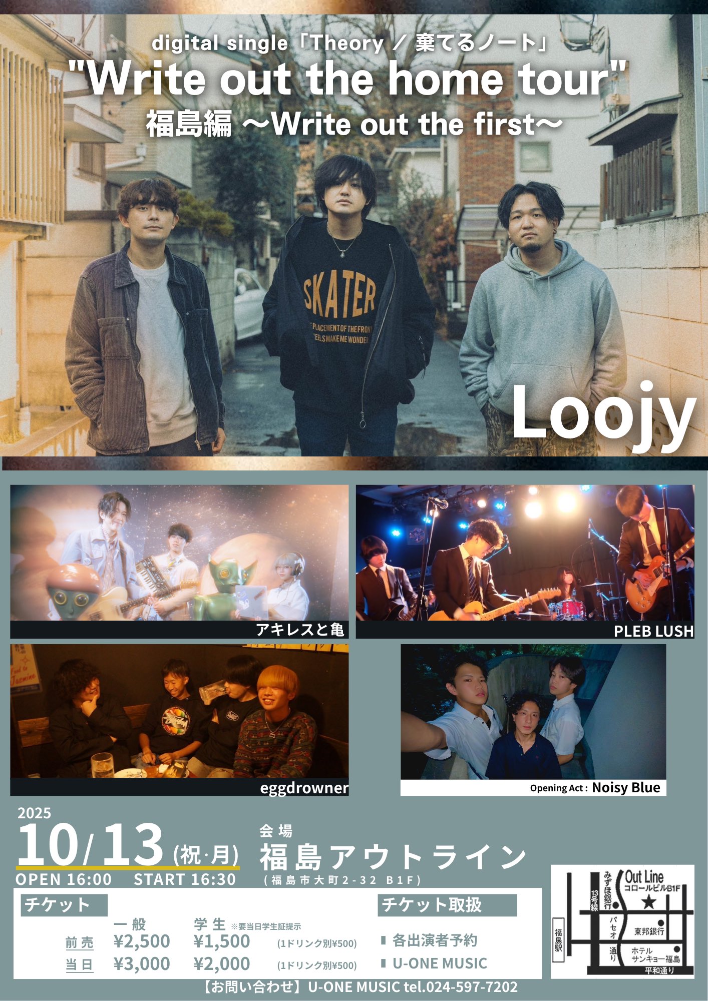 ホーム > OUTLINE > ライブスケジュール > Loojy digital single「 Theory / 棄てるノート 」 “Write out the home tour” 福島編〜Write out the first〜