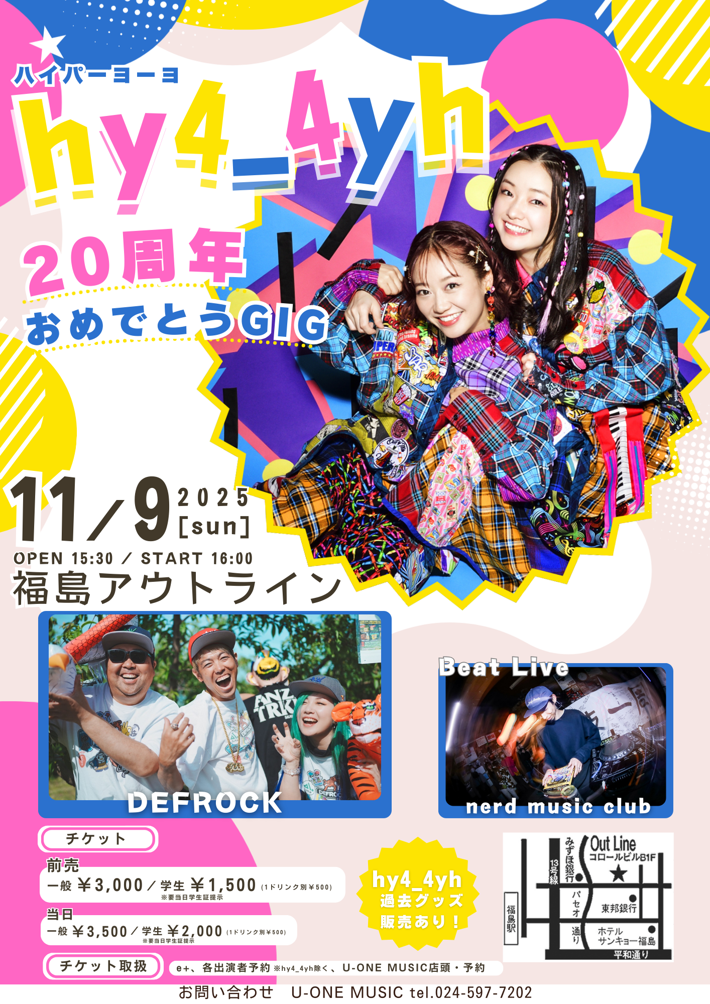 ホーム > OUTLINE > ライブスケジュール > hy4_4yh 20周年おめでとうGIG