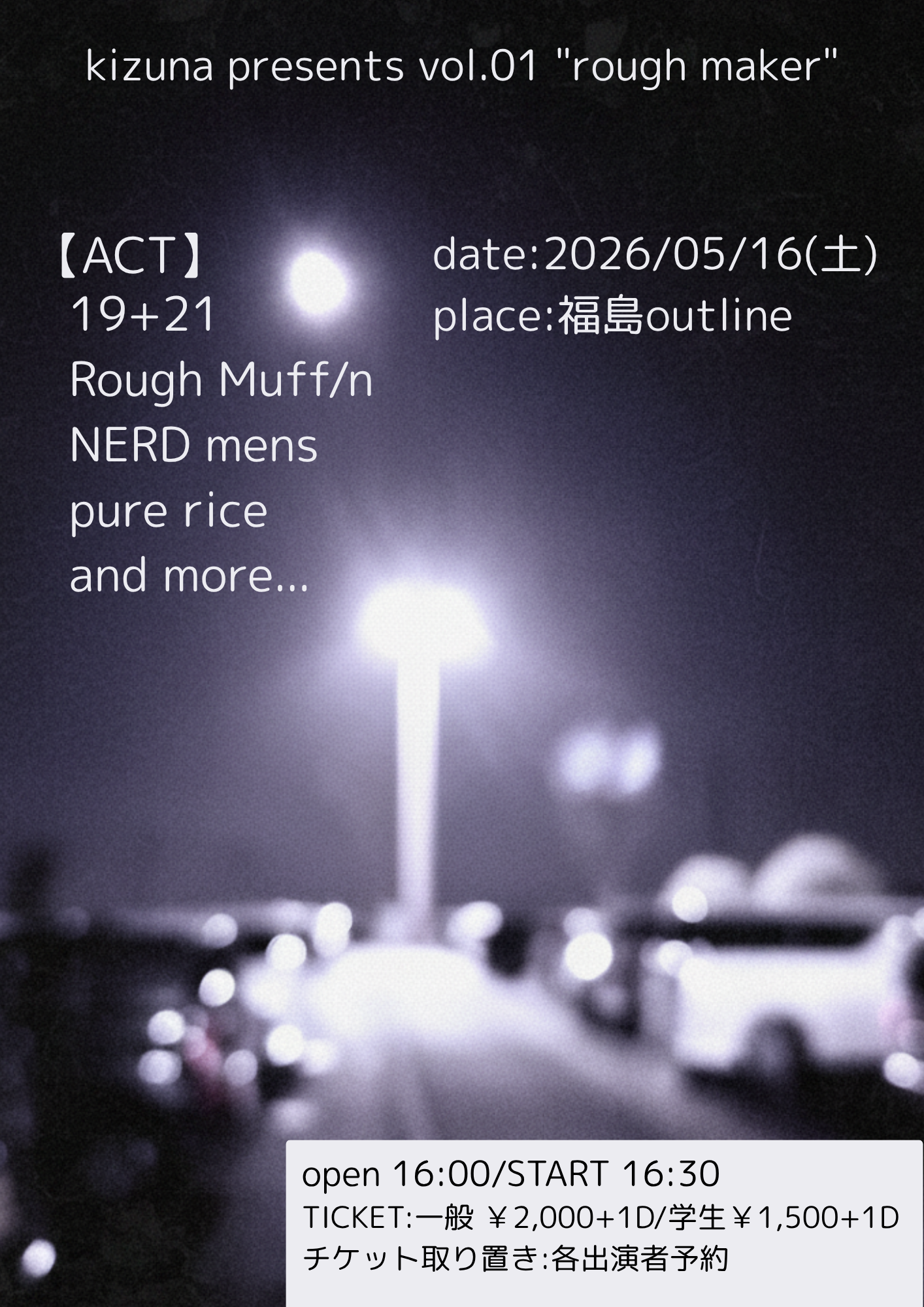 ホーム > OUTLINE > ライブスケジュール > kizuna presents vol.01″rough maker”