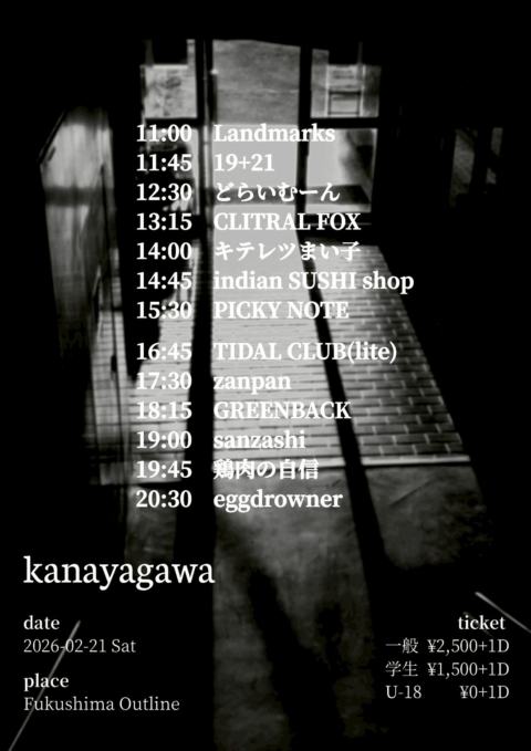学生前売¥2,000(+1ドリンク別¥500)当日要学生証提示